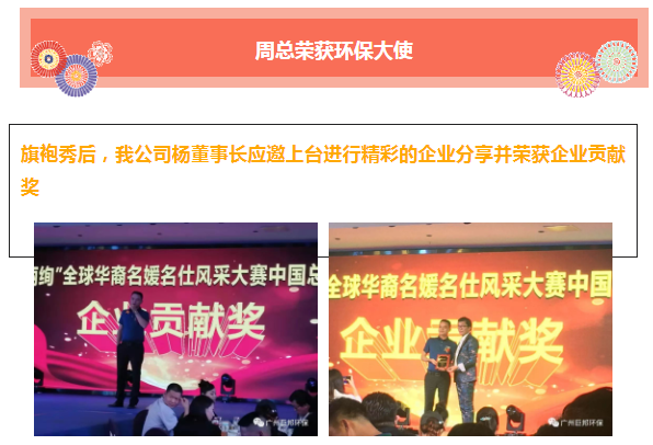 熱烈祝賀廣州巨邦環(huán)保周彥群總經(jīng)理榮獲全球華裔名媛名仕風(fēng)采大賽中國賽區(qū)總冠軍